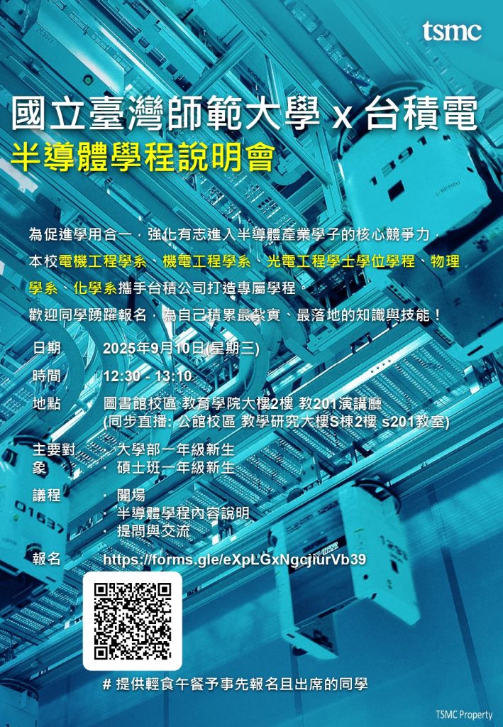 國立臺灣師範大學 X 台積電半導體學程說明會